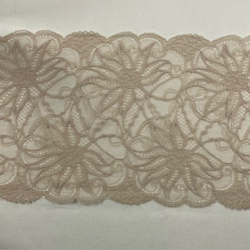 Galon de dentelle Leavers tissée à Calais en motif floral.