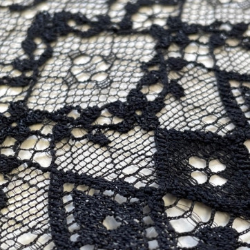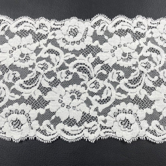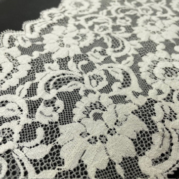 Galon de dentelle Leavers tissée à Calais en motif floral.