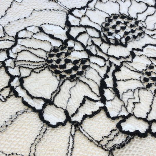 Laize de dentelle tricotée à Calais en motif FLORAL .